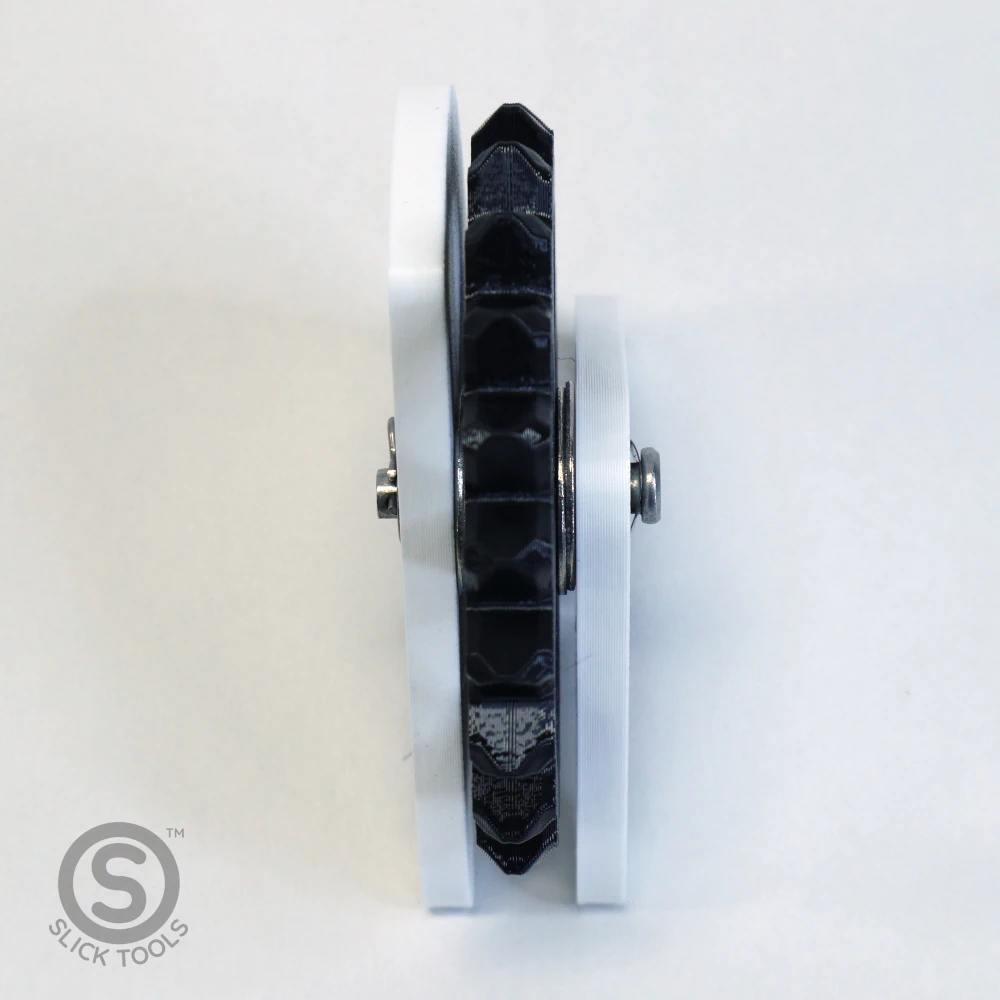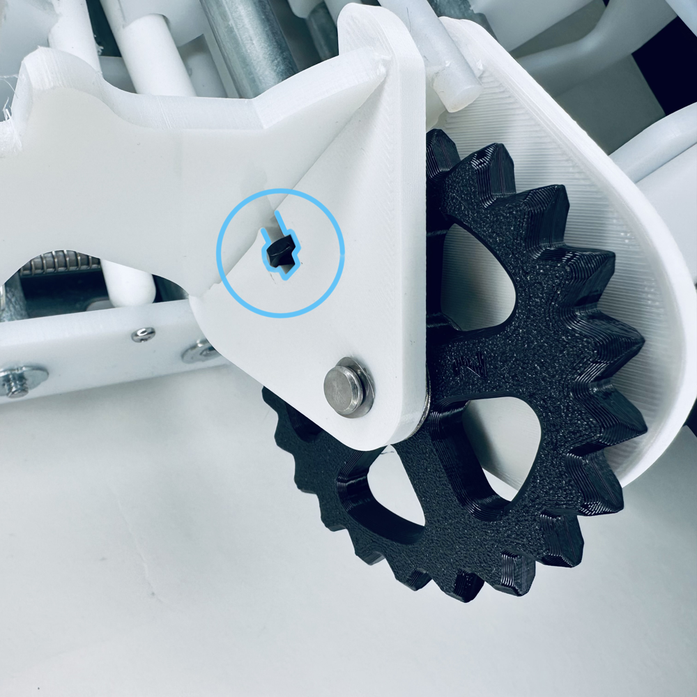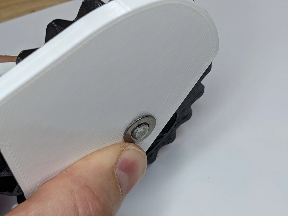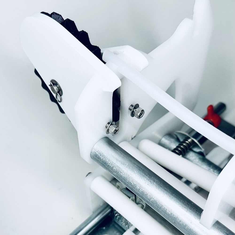 - Take note of the large rounded side of the sprocket assembly. This will be on the inside and is intended to help guide the wire mesh into the machine.