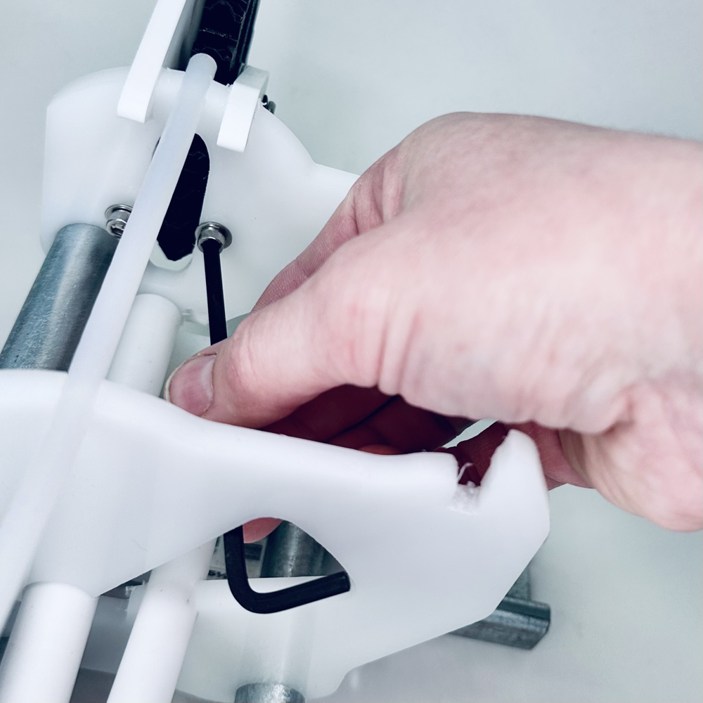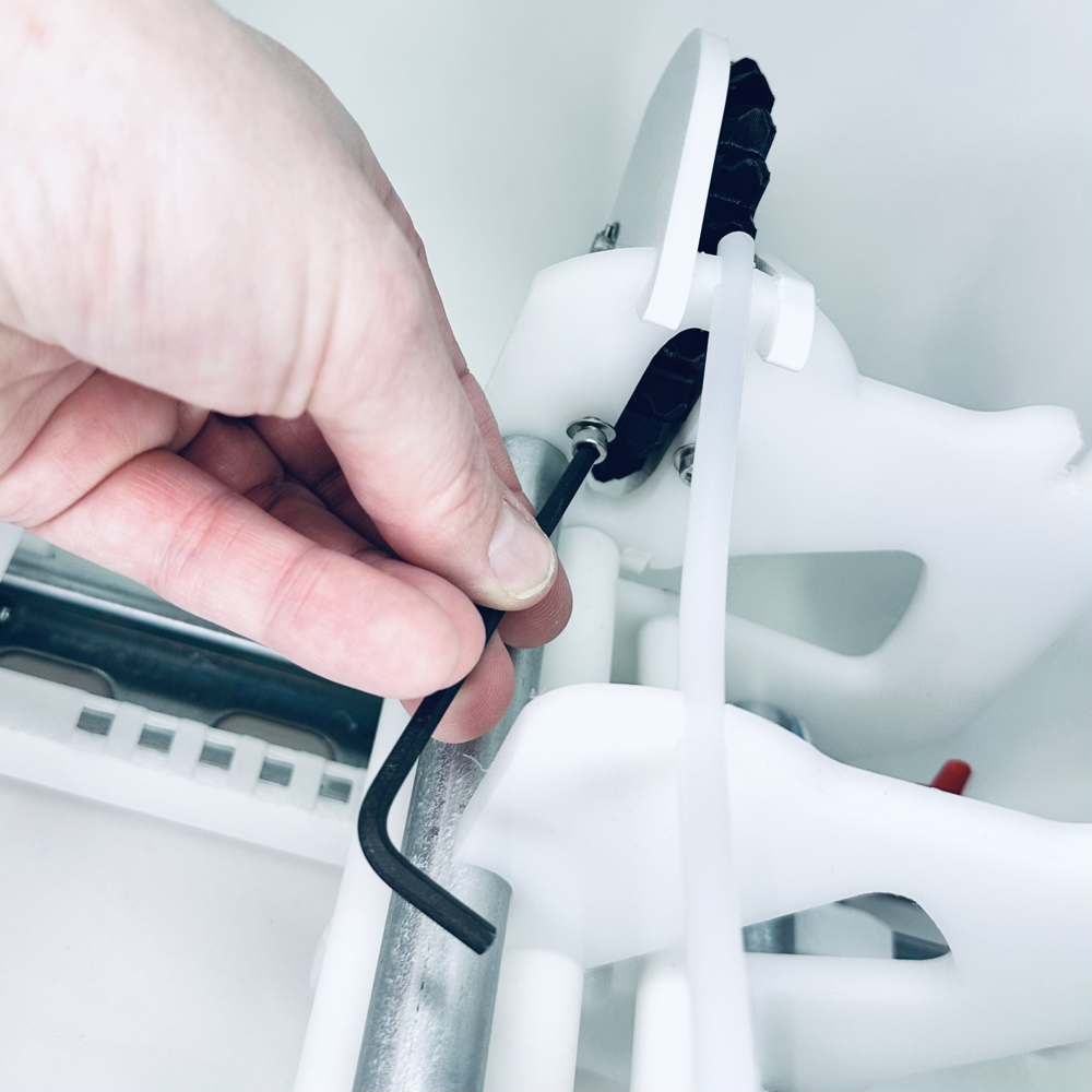- Use the ball end of the hex key to tighten both bolts until they’re snug. You’re done!