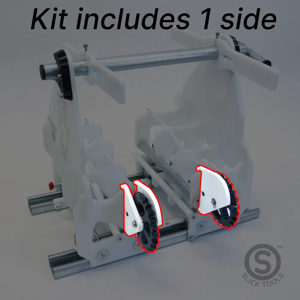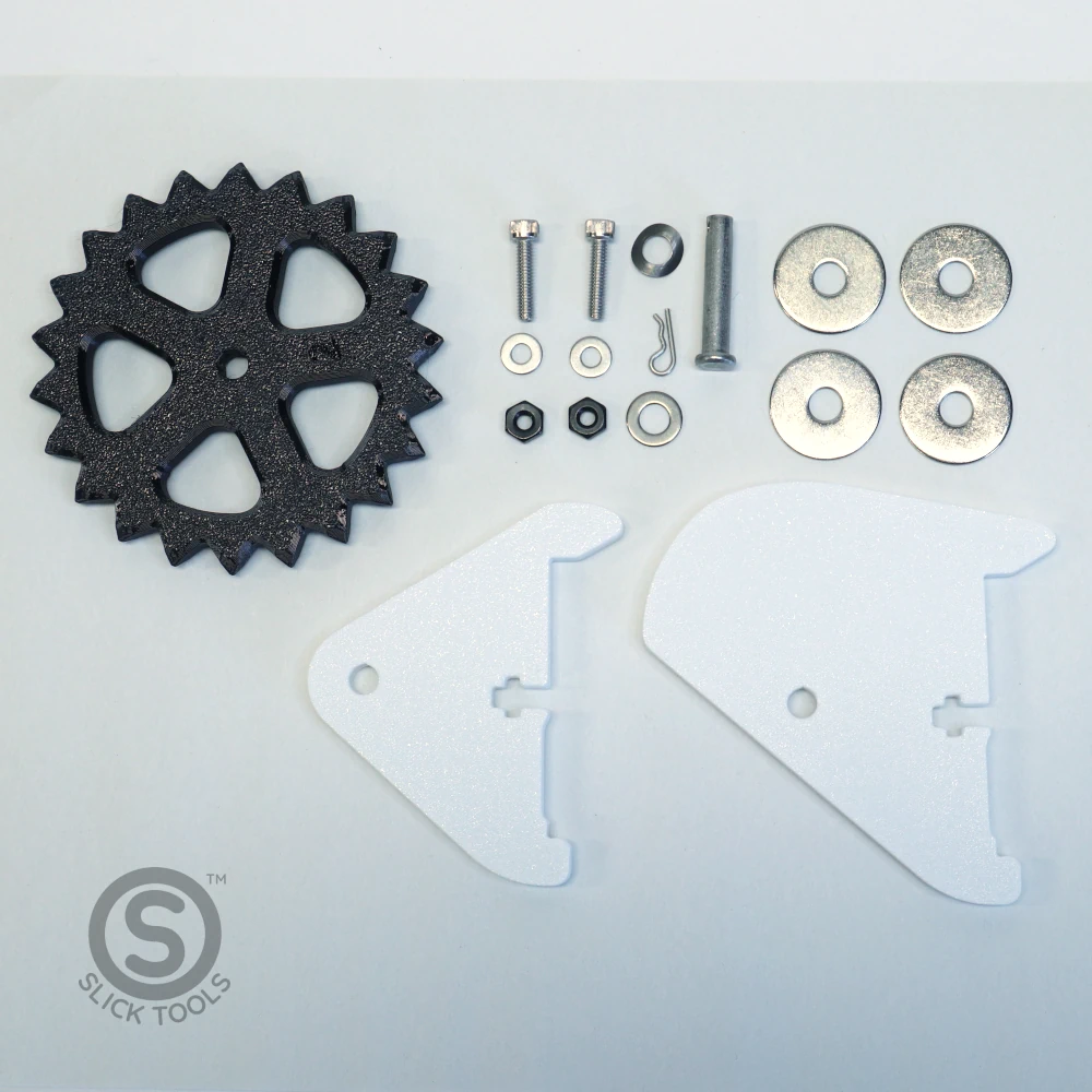 Sprocket, bracket and hardware which help guide wire mesh into the Bender. One kit includes a single sprocket and associated parts; two kits required to replace both sprockets on a Bender. Can be used on either side. Attachment hardware included. Fits AG Bender model 7.5 and up. Click here for help identifying your AG Bender model.