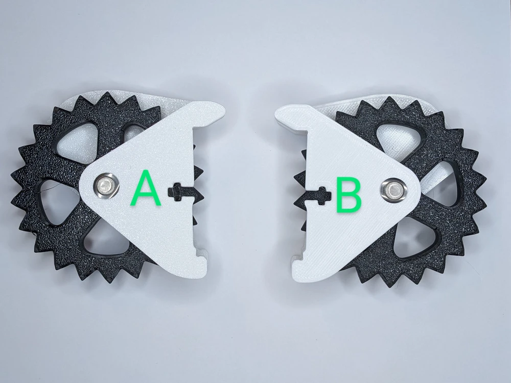 - Side A and Side B sprocket assemblies are mirror images of each other.